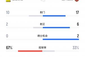 吉达联合本场10次射门2次射正控球率67%,对手迪拜国民17次射门6次射正。