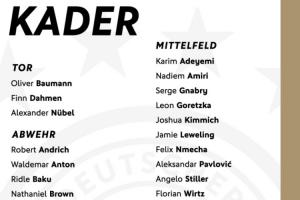 体育资讯10月02日讯 德国队公布了新一期世预赛名单,沃尔特马德、维尔茨领衔,基米希、格雷茨卡、格纳布里在列。