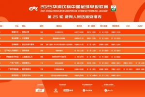 中甲第25轮具体裁判安排如下(详情如图):