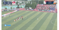 比赛伤停补时阶段,比分落后的遂宁队获得中场附近任意球,球队门将刘宇航也冲进禁区内参与争顶。随后任意球开出,刘宇航高高跃起头球破门,遂宁队1-1绝平广安队!