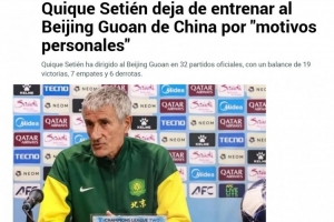 体育资讯10月6日讯 日前,西班牙媒体《马卡报》、《世界体育报》报道了北京国安主帅塞蒂恩因“个人及家庭原因”辞职的消息。