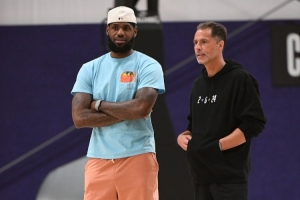 这是第一个事,第二个事就更直接了,詹姆斯的合同是26年(明年)到期,但是今年有球员选项,是吧?按说这时候球队要提前跟詹姆斯谈续约了,历史上每一回球队都是这么来的,是吧?他过去跟骑士谈1+1,+1完了一年骑士就得赶紧找人家,求爷告奶奶,咱赶紧执行,要不然咱提前再签一长的,比如+5呢?再签一长的+3、+5,您看看怎么着?就是赶紧找他。每一回都是合同早就准备好了,按数最大的填,您就直接签字,是吧?大哥,您来,您看咱们怎么签?求求您了,您跟我们续吧,都是这样啊。可是这回,今年夏天湖人都没跟詹姆斯谈续约这事。湖人连续约的合同都没拿出来,都没找你。