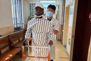 好消息!广西外援阿萨莫阿在助行器辅助下,已经可以下床行走