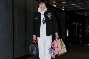开拓者官方晒出了球员入场照,杨瀚森依然带着自己的粉色小书包。