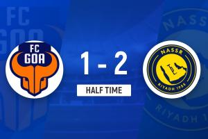 上半场比赛结束,利雅得胜利2-1果阿。