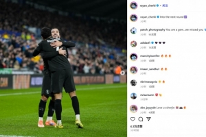 他也在赛后通过社媒晒出自己同马尔穆什相拥庆祝的合照,并配文:“晋级下一轮☑️”